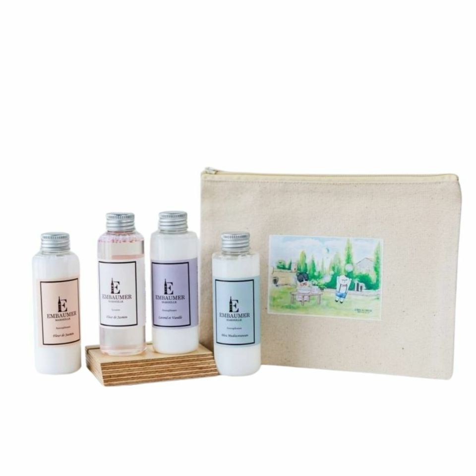 少量でお試しいただきやすいトライアルセット。アンボメーが誇る洗剤, 柔軟剤を可愛いポーチと一緒にお届けします。(洗剤・柔軟剤3種 各120ml)