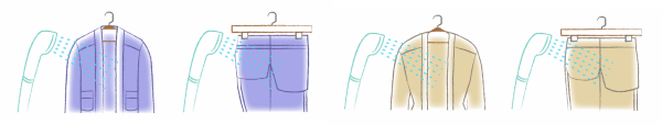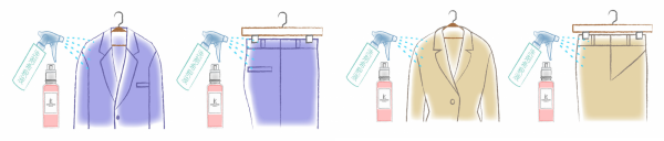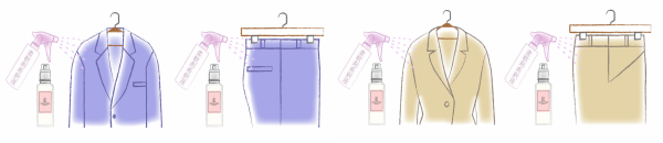 ハンガーに掛けたままスプレーすれば、軽いシワはアイロンを当てずに伸びます。