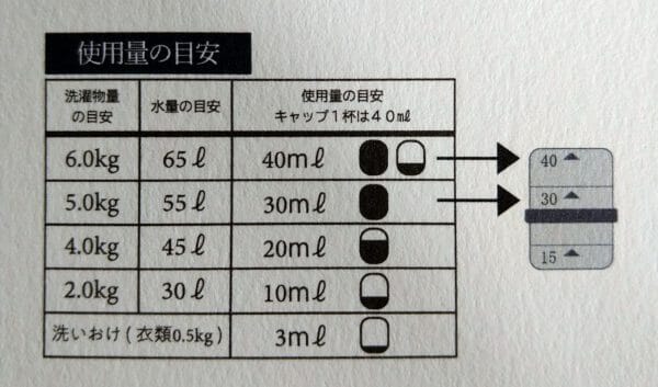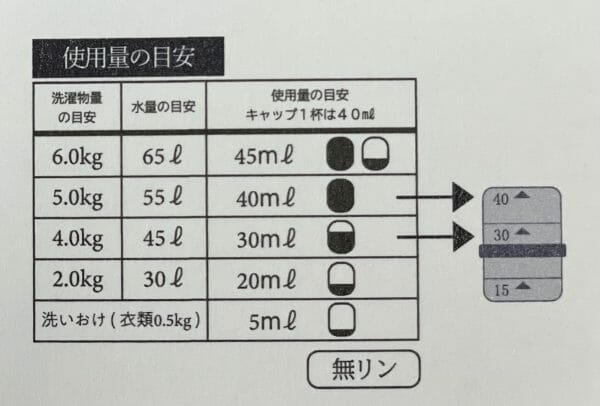 中性液体洗剤『LESSIVE』の使用量
