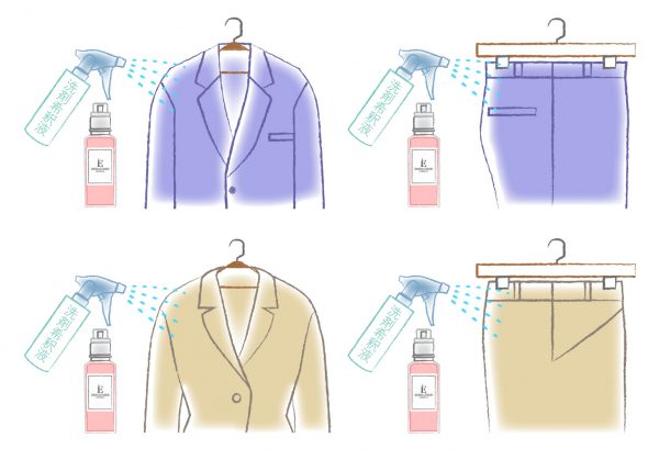 ハンガーに掛けたままスプレーすれば、軽いシワはアイロンを当てずに伸びます。